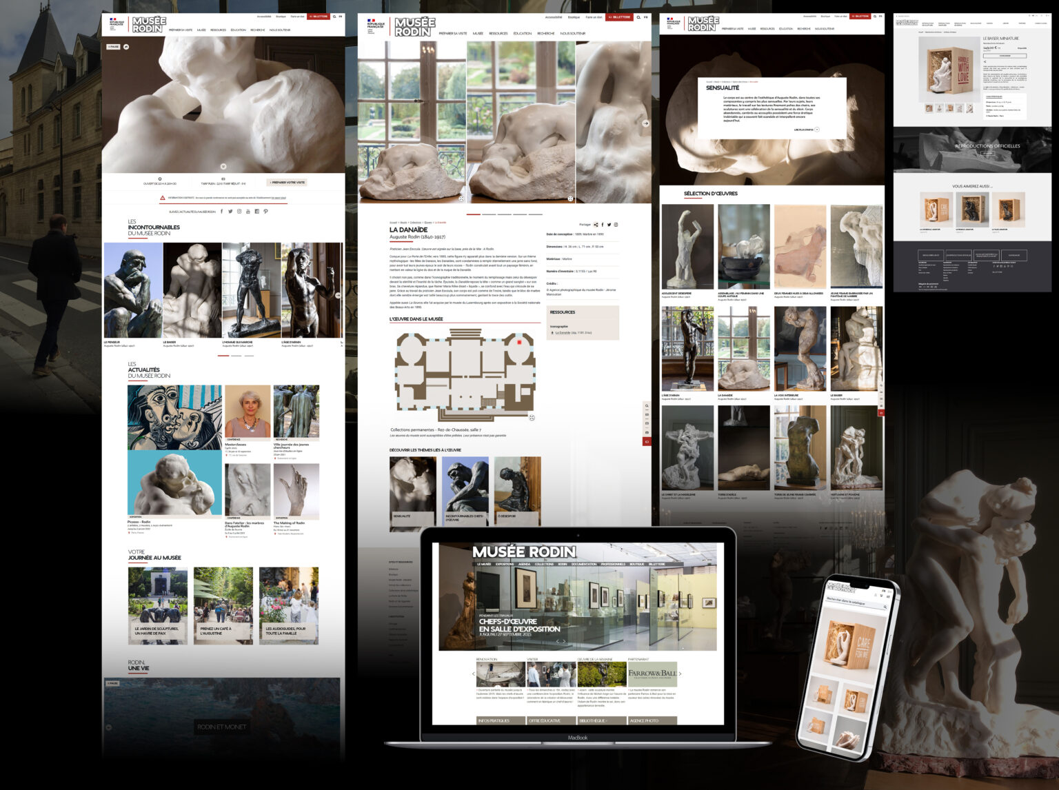 Installé dans l’hôtel Biron, face aux Invalides, le musée Rodin est à la fois un musée et un lieu historique, ancienne demeure de l’artiste. Le site internet a été pensé pour traduire cette singularité : montrer les œuvres, bien sûr, mais surtout les œuvres dans leurs lieux.